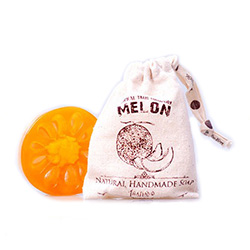 Натуральное мыло ручной работы с экстрактом дыни, легко мылится имеет отличный натуральный аромат. Прекрасно подходит в качестве подарка, упакованно в мешочек из натуральной ткани.